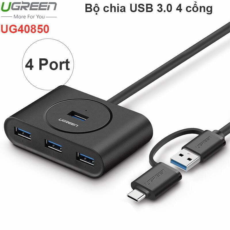 Thiết bị chia từ 1 ra 4 cổng USB 3.0 + Đầu chuyển USB-C OTG Ugreen 40850