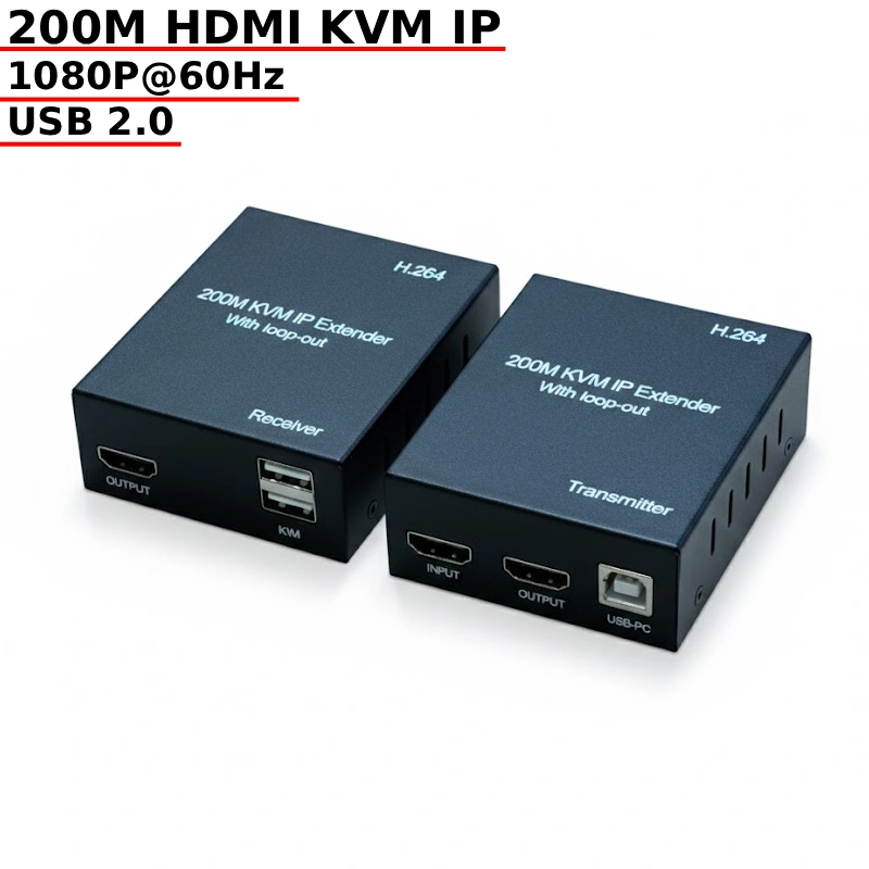 Bộ Mở Rộng HDMI KVM 200m Qua Cáp Mạng – HDMI KVM IP Extender Over LAN Có Cổng USB