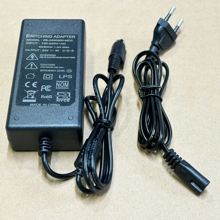 Nguồn DC Adapter 24V-3A 3 chân kim dùng cho máy in nhiệt ZB-2400300-MD3 với 3 chân kim dùng cho máy in nhiệt, máy in mã vạch…