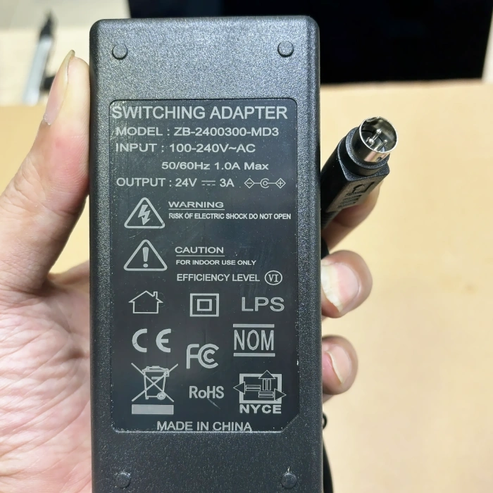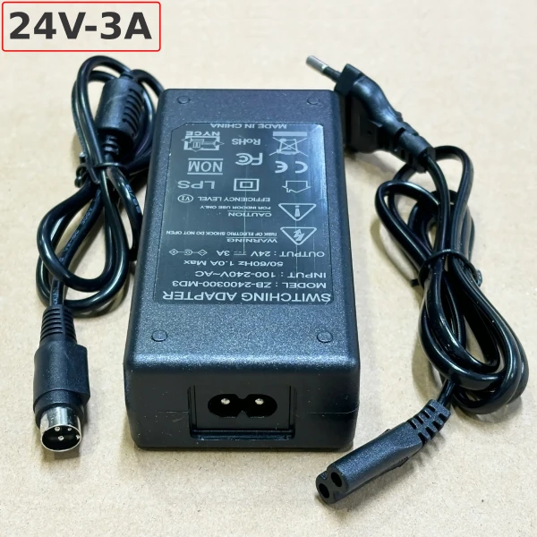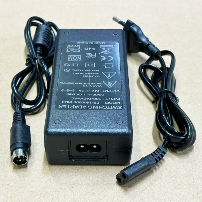 Bộ nguồn máy in nhiệt DC Adapter 24V-3A ZB-2400300-MD3, chân cắm 3 chân kim MD3
