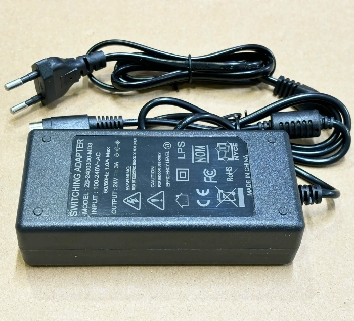 Nguồn DC Adapter 24V-3A 3 chân kim dùng cho máy in nhiệt ZB-2400300-MD3 với 3 chân kim sử dụng cho máy in nhiệt, máy in mã vạch…