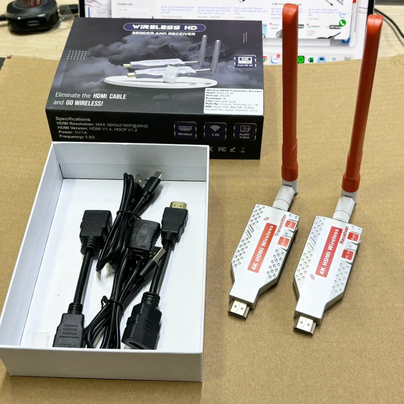 Bộ thu phát HDMI không dây 4K 150m HDWL150-4K với toàn bộ phụ kiện kèm theo như hình ảnh (chụp thật)
