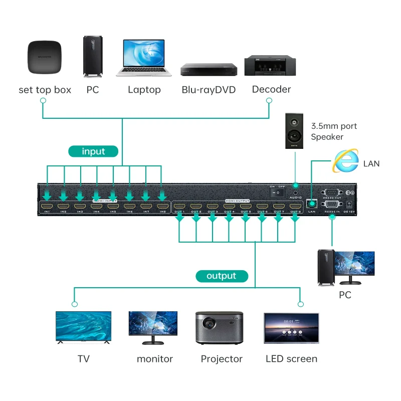 Lý do nên chọn Bộ trộn HDMI ma trận 8×8 MT-VIKI MT-HD88L: