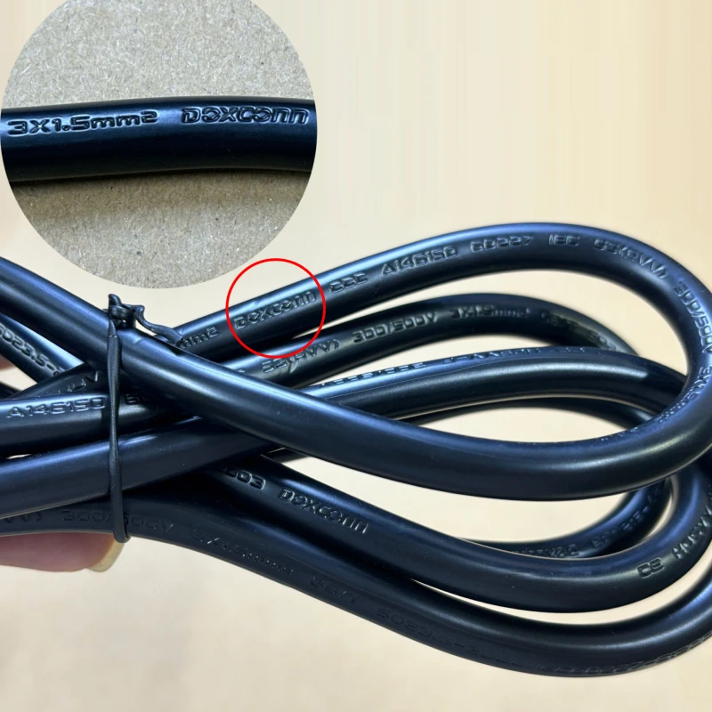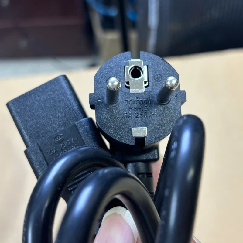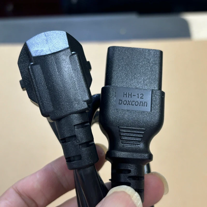 Cáp nguồn C19 3×1.5mm Doxconn 2 chân cong chuẩn châu âu EU CEE77 với logo Doxconn được in nổi trên đầu cáp