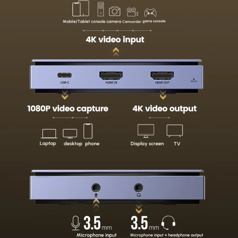 - Độ phân giải ghi hình: Lên tới 1080P@60Hz (hỗ trợ truyền tín hiệu input 4K@60Hz)