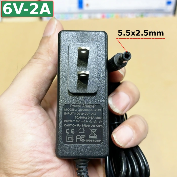 ⚙️ Thông Số Kỹ Thuật Cục Nguồn DC Adapter 6V 2A ZB060200-2US
