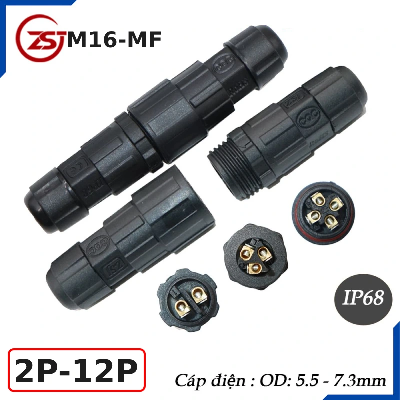 Đầu khớp nối dây điện kiểu đực cái chống nước IP68 chính hãng ZSJ M16-MF
