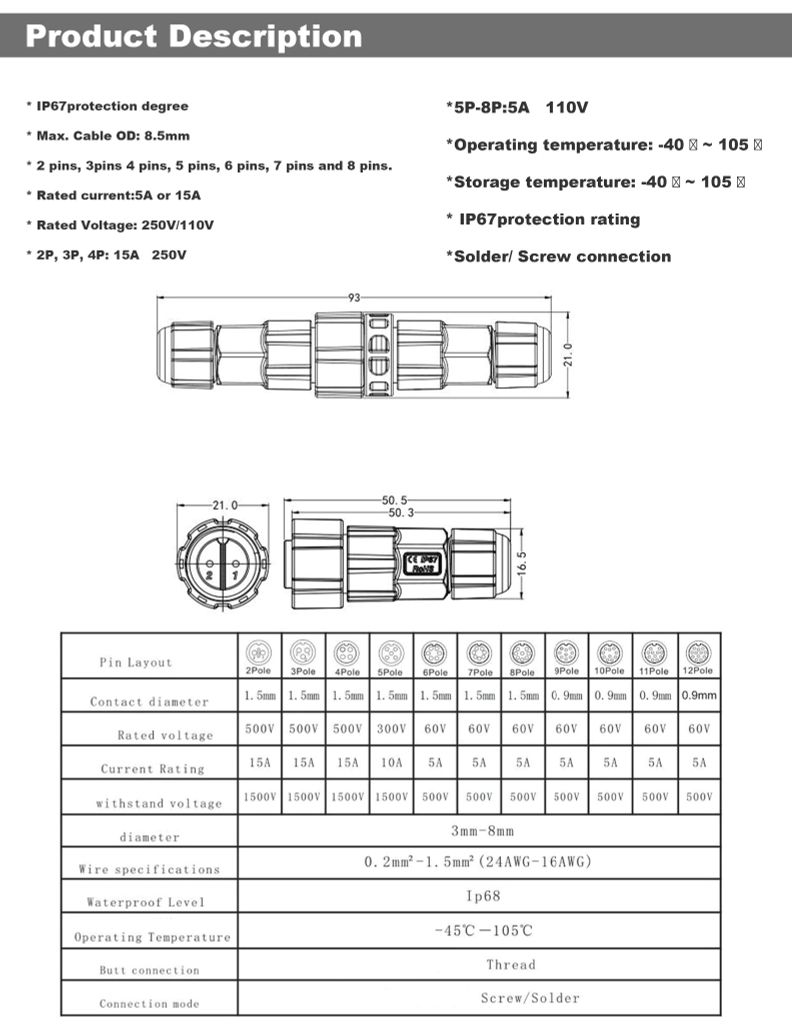 9P / 10P / 11P / 12P | 60V | 5A |