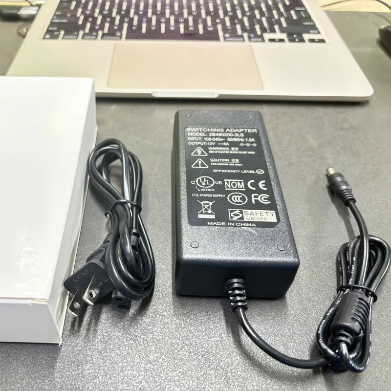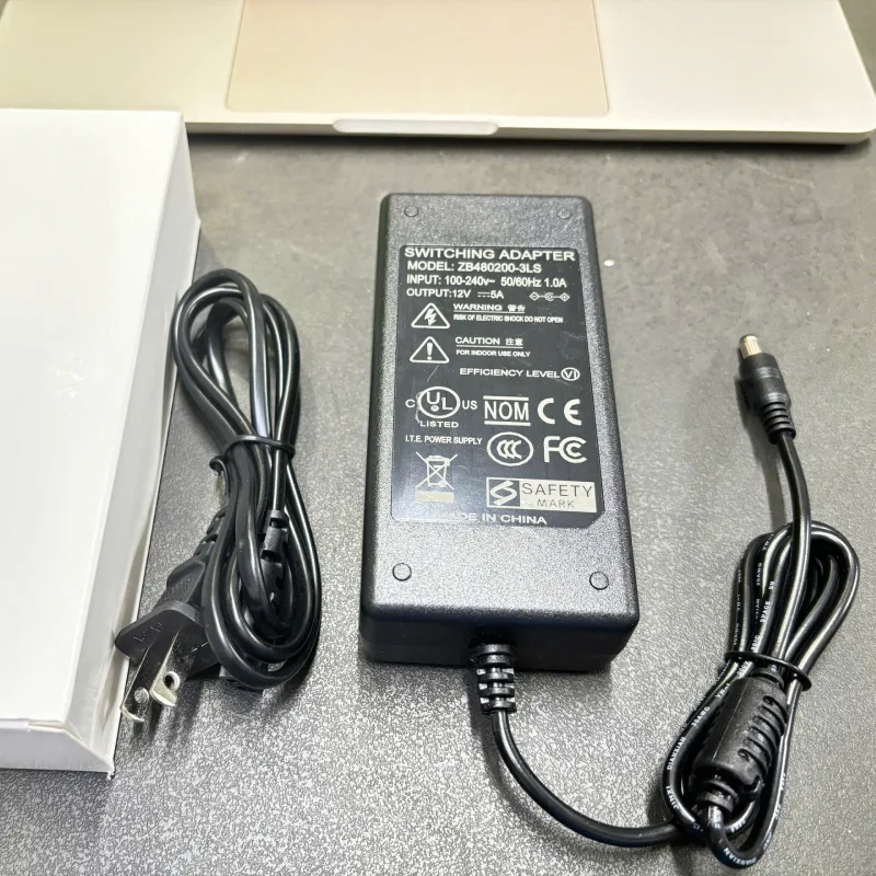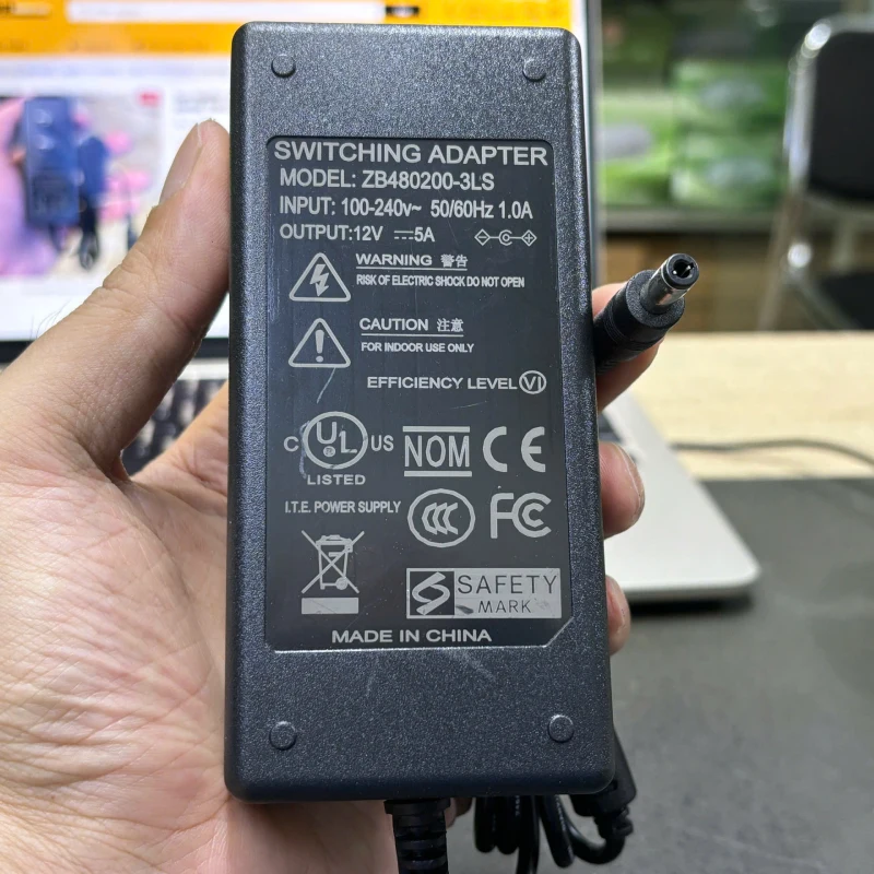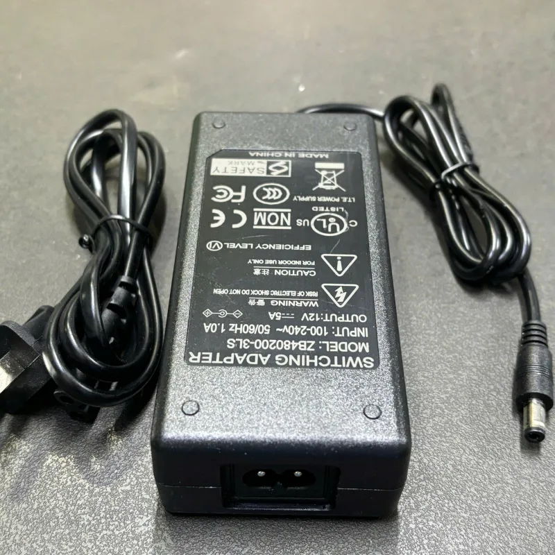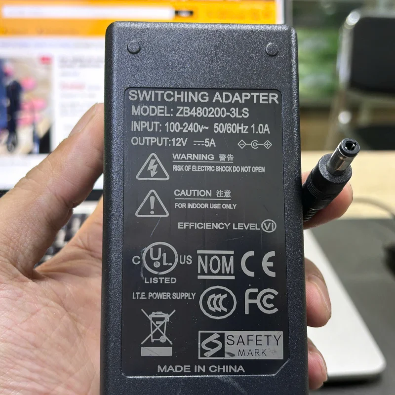 Nguồn DC 12V-5A ZB480200-3LS, dây AC 1m đầu US – kiểu số 8, dây DC tổng dài 1m, có đèn báo. Adapter cấp nguồn ổn định cho thiết bị công nghiệp, motor, router, camera, bộ điều khiển…